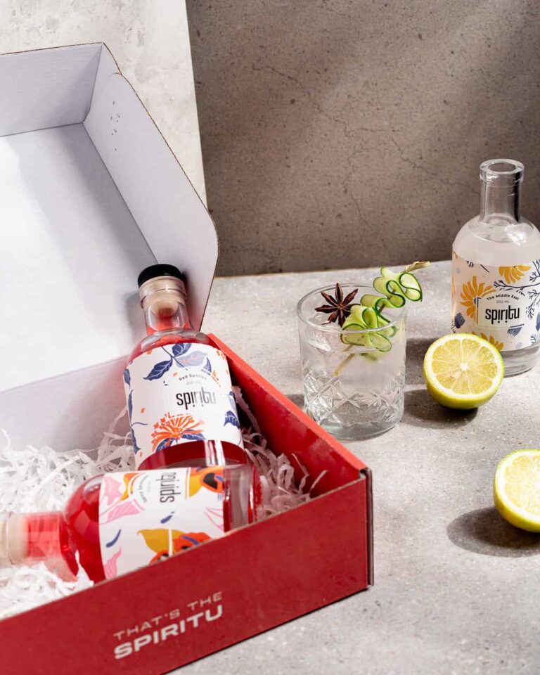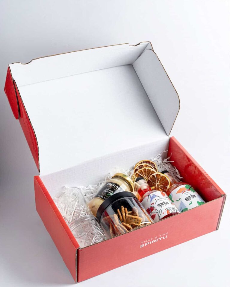 קופסאות ארוזות בקפידה, מלאות בקוקטיילים מבוקבקים לבחירה ומבחר תוספות שמשלימות חוויה ייחודית וטעימה