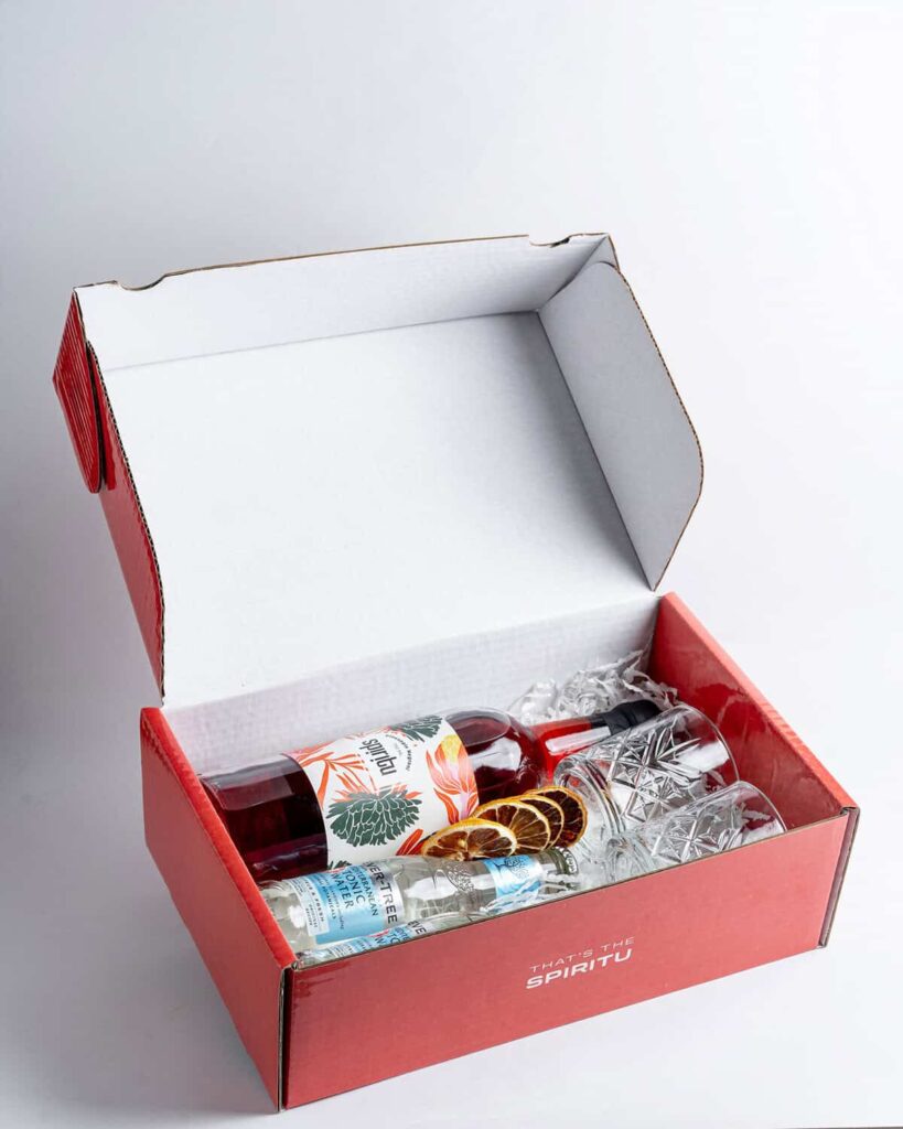 כולל בקבוק 750 מ"ל, 2 בקבוקי טוניק, 2 כוסות מעוטרות. מתאים לעד 4 אנשים.